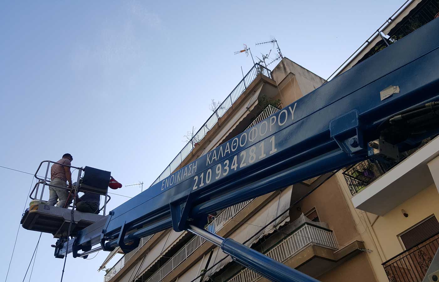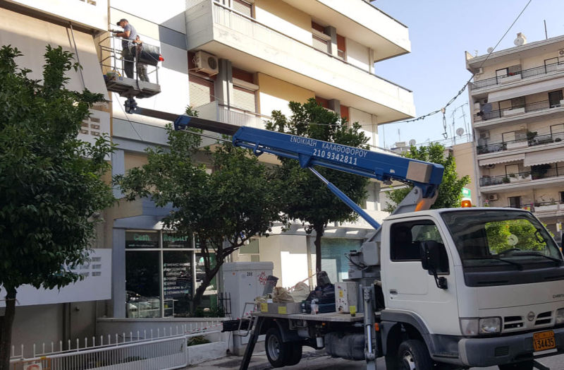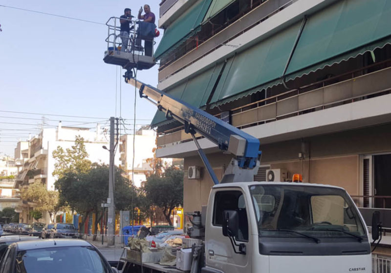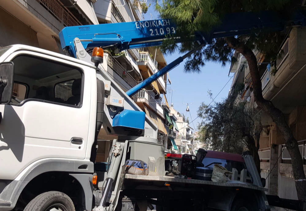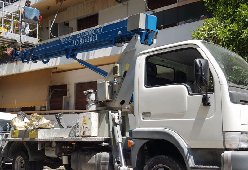 ανυψωτικό όχημα με έμπειρους χειριστές για επαγγελματική χρήση.