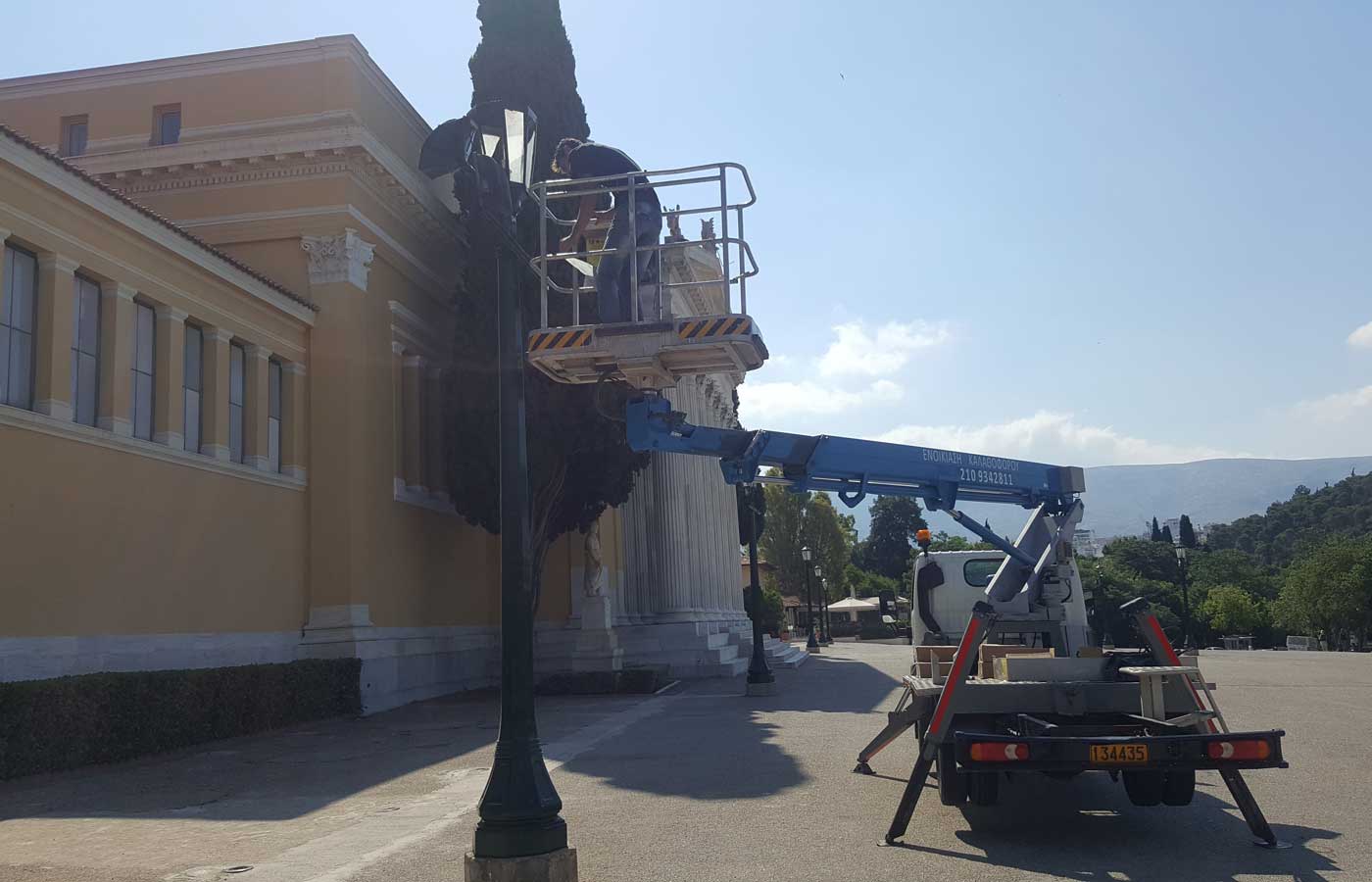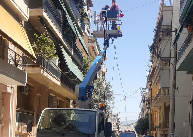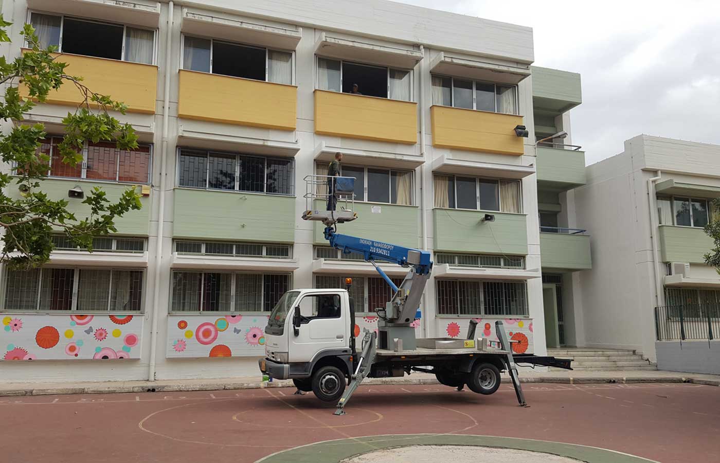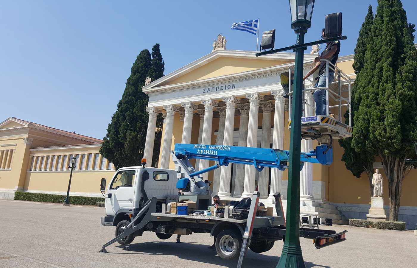 ανυψωτικό όχημα με έμπειρους χειριστές για επαγγελματική χρήση.